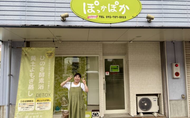 博多南駅から徒歩約5分の場所にある「からだあたためサロン ぽっかぽか」。完全予約制・女性専用のサロンで、ひのき酵素風呂や黄土よもぎ蒸し、アロマトリートメントを楽しむことができます。身体が温まるのはもちろん、店主の吉柳(きりゅう)さんのおもてなしやお人柄から心まで“ぽっかぽか”になってしまいます。